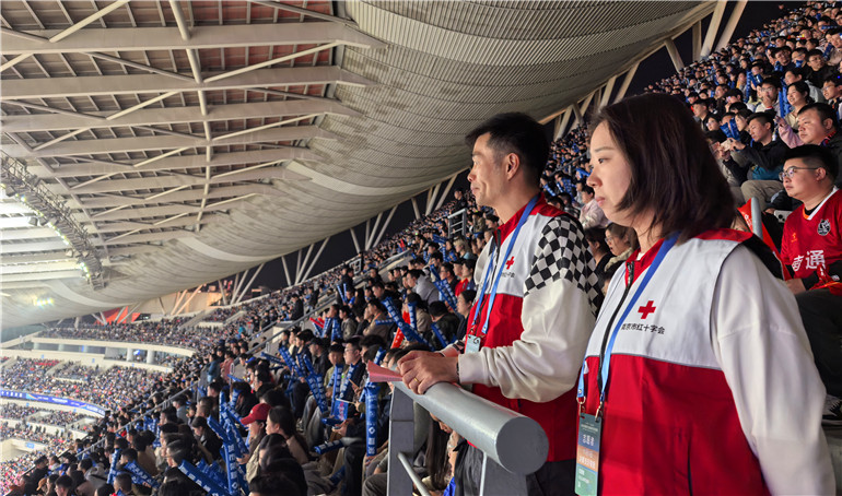 “苏超”现场 红十字护航
